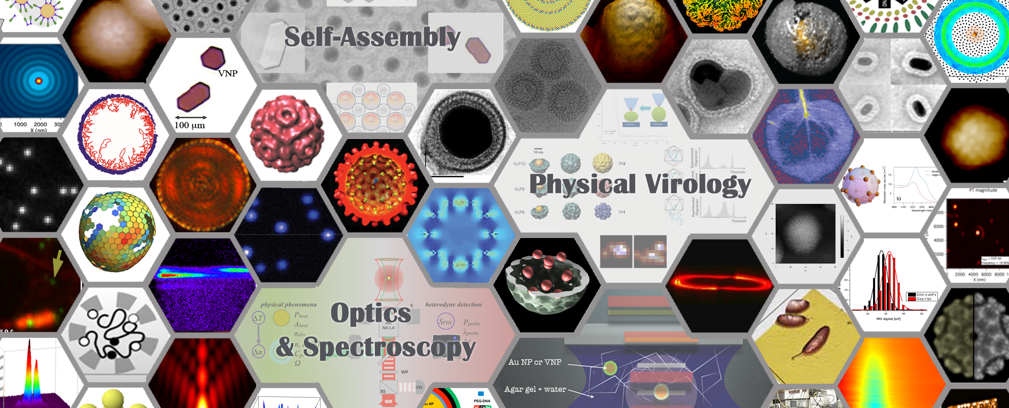 Nanoscale Optics, Quantum Photonics, Physical Virology, Bio-architected hybrid materials with 3D nanoscale order.
